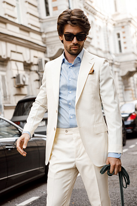 Роскошный костюм в оттенке ivory для Антона Лаврентьева. Магия всегда будет сопровождать вас на улицах города - магнитом притягивать восторженные взгляды прохожих. Не верите? Испытайте на себе!