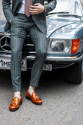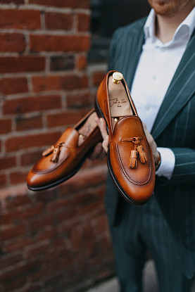 Коричневые Tassel Loafers из гладкой кожи телёнка яркого и интенсивного коньячного оттенка – осталось лишь дождаться вечера и отправиться на прогулку.