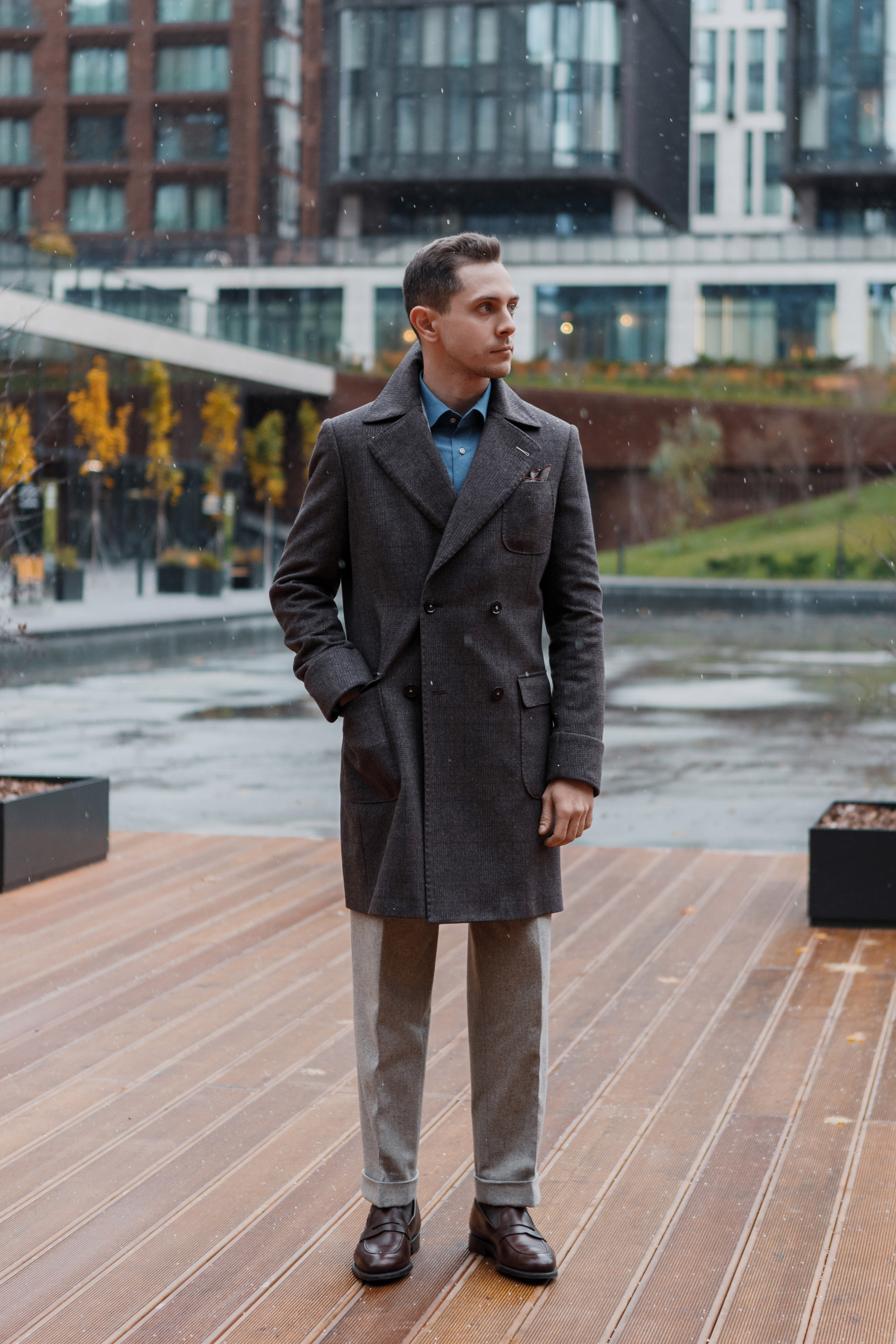 Двубортное пальто «Ольстер» в классической интерпретации из шерсти и кашемира от итальянского бренда Stylbiella. Отложной воротник, накладные карманы, встречная складка на спинке с «парящей» шлицей и манжеты с подворотом. Зачем переосмысливать классику, если её форма уже доведена до совершенства.