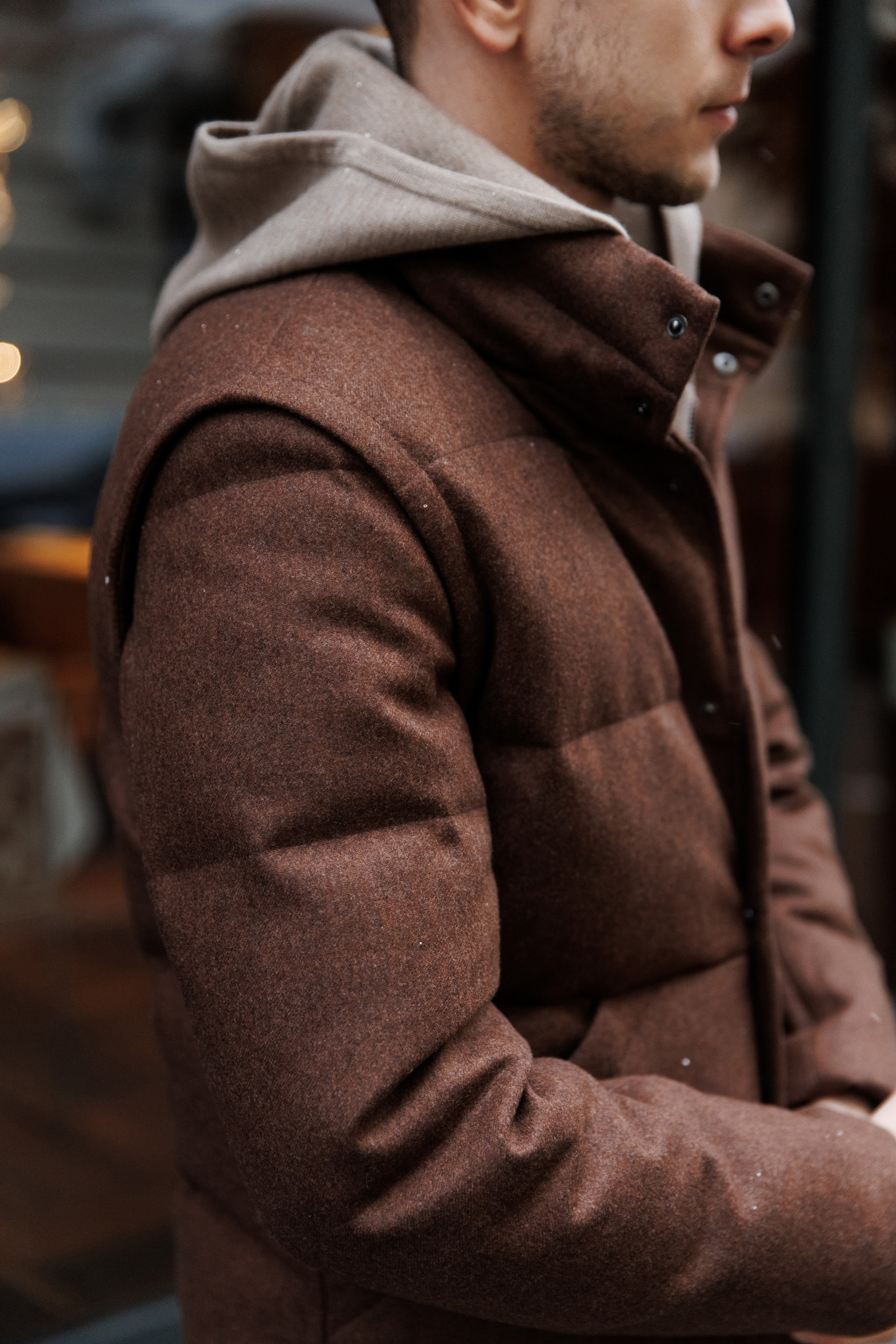 Укороченная куртка с фигурным рубашечным низом из роскошной фланели итальянского бренда Stylbiella. Кнопочная застёжка и возможность трансформации в утеплённый стёганый жилет делают модель функциональной, с выверенным спортивным акцентом – для тех, кто привык быть всегда налегке.