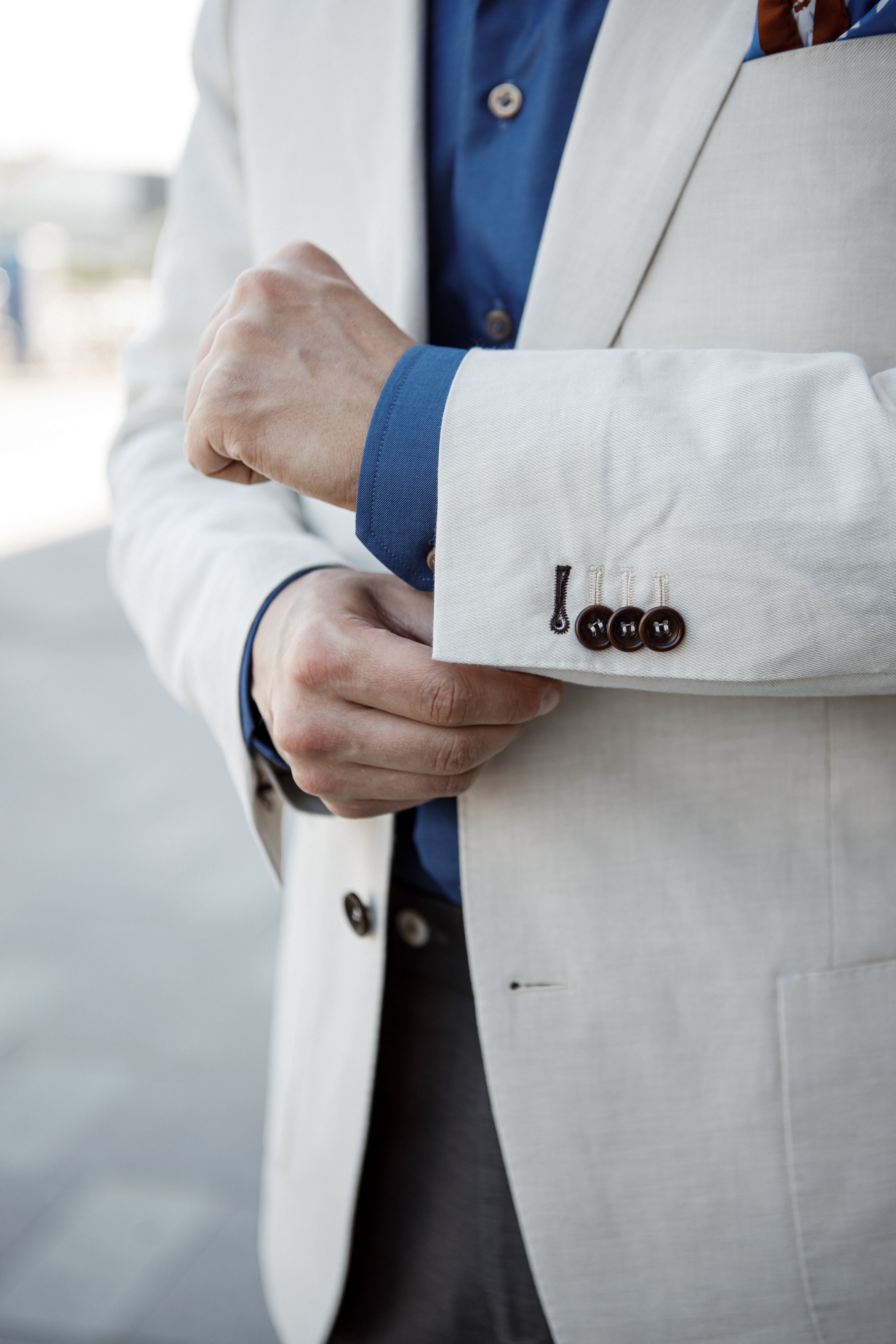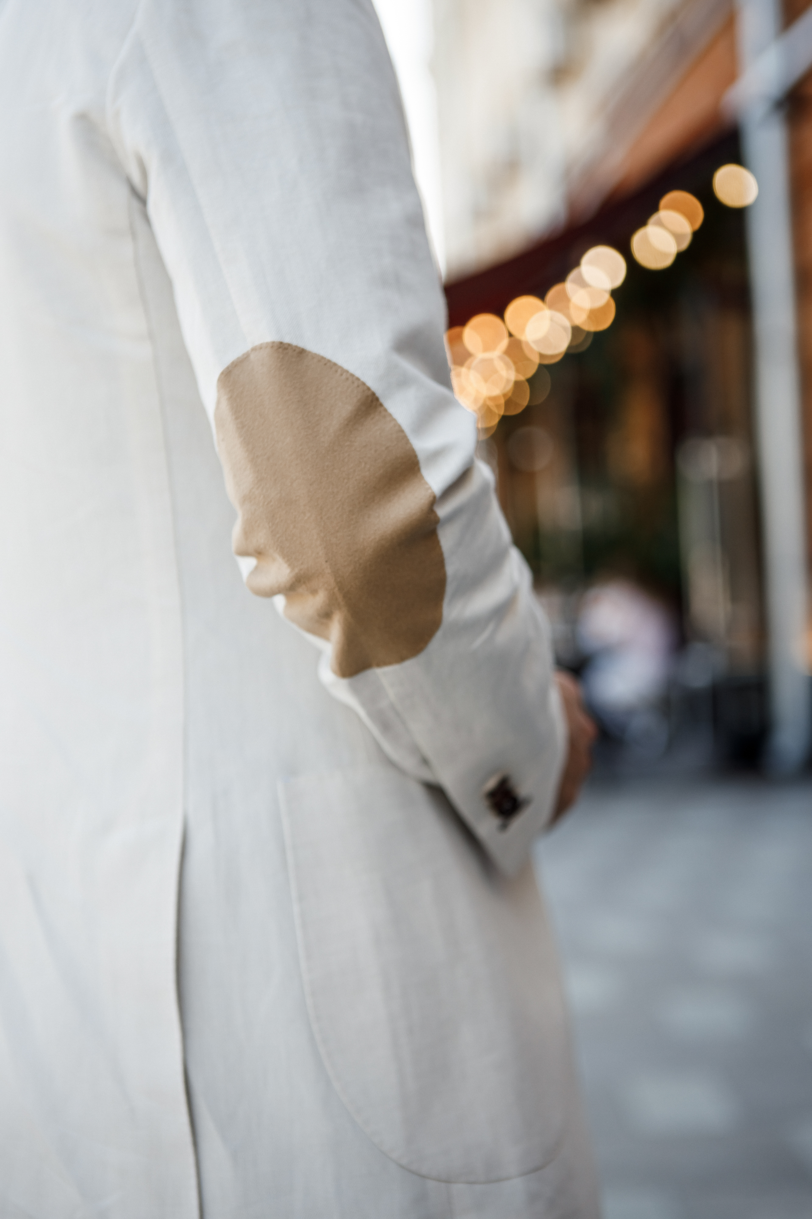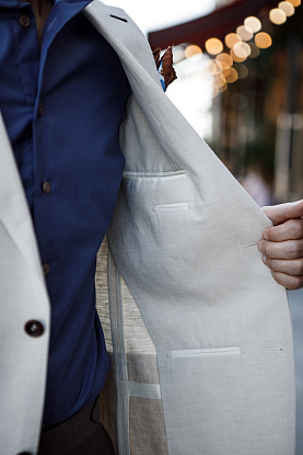 Светлый летний пиджак отражает солнечный свет и притягивает восторженные взгляды прохожих. Испытайте на себе!