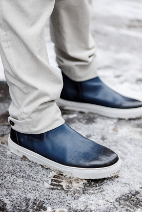 Пиджак из теплой фланели от итальянской мануфактуры StylBiella, стеганый жилет, брюки-карго из микровельвета и Челси-спорт – фактуры материалов так гармонично дополняют друг друга, что хочется танцевать.