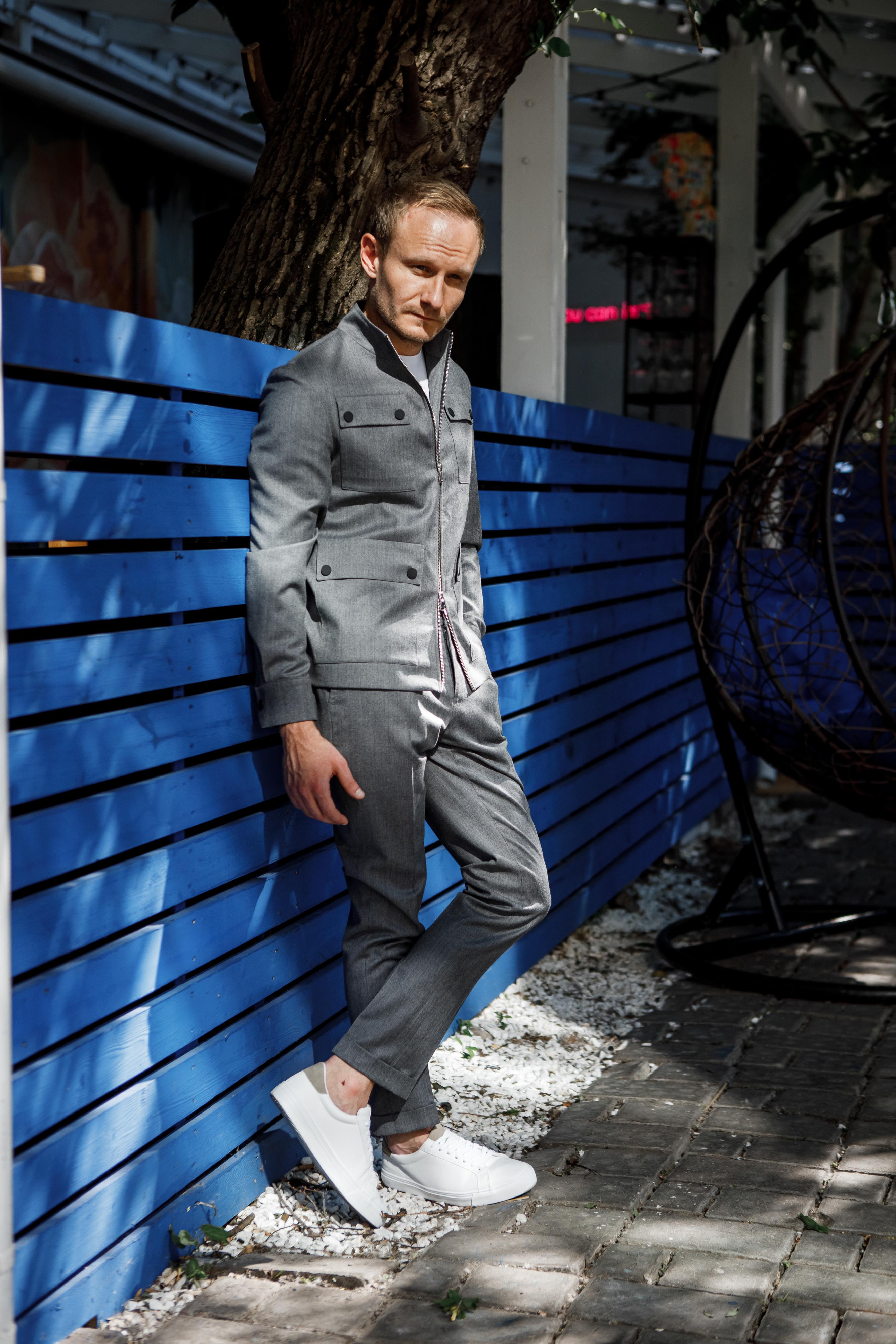 Городской костюм – абсолютный минимализм из 100% шерсти итальянской мануфактуры StylBiella. Ткань со стрейч-эффектом, вместительные карманы и манжеты на кнопках – стиль Сафари для современных Героев.