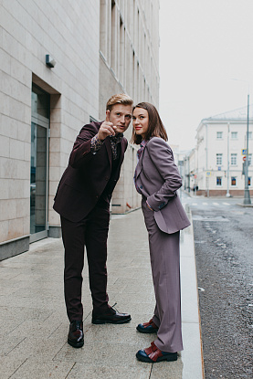 Семейный образ для Вячеслава и Екатерины Чепуренко. Костюм неинтенсивного сиреневого оттенка из роскошной шерсти итальянской мануфактуры StylBiella. Изящный жакет с широкими брюками палаццо, блузка из тончайшего хлопка – ничего лишнего, только стиль!